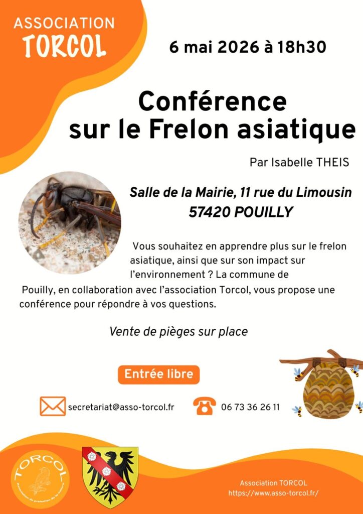 Vous souhaitez en apprendre plus sur le frelon asiatique, ainsi que sur son impact sur l’environnement ? La commune de Pouilly, en collaboration avec l’association Torcol, vous propose une conférence animée par Isabelle Theis pour répondre à vos questions.